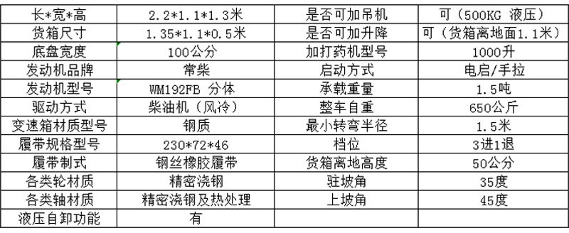1500型履帶運輸車技術(shù)參數(shù)