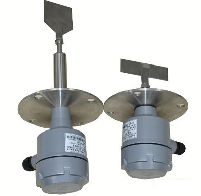 RC阻旋式料位開關是利用微型馬達做驅(qū)動裝置,傳動軸與離合器相連接,當未接觸物料時,馬達正常運轉(zhuǎn),當葉片接觸物料時,馬達停止轉(zhuǎn)動,檢測裝置輸出一接點信號,同時切斷電源停止轉(zhuǎn)動。當物料下降時葉片所受阻力消失,檢測裝置依靠扭力彈簧恢復到原始狀態(tài)。針對不同比重物料扭力大小可以調(diào)節(jié)。
